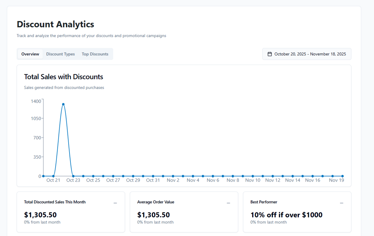 Elevated keeps analytics focused on discount performance specifically. You can see exactly how each promotion is doing without needing to cross-reference with other reports.