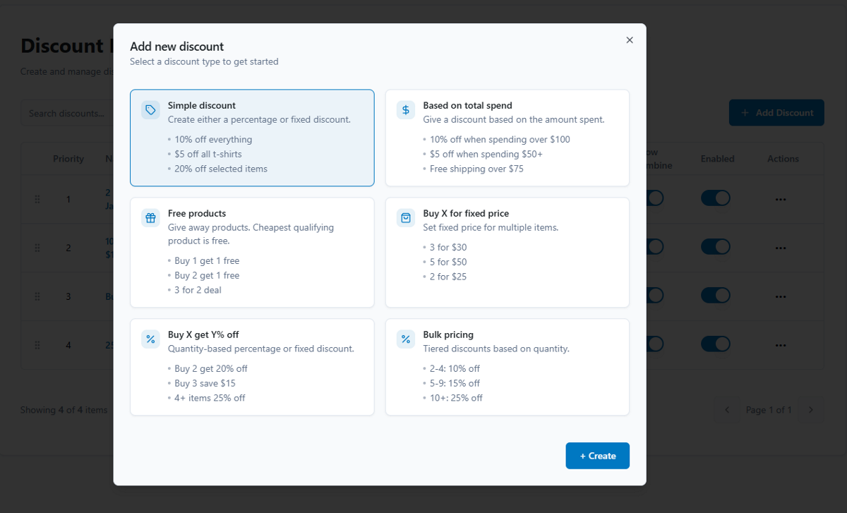 To add a basic percentage discount, you can create a coupon in WooCommerce and select «Percentage discount» as the discount type. For more flexibility, a plugin like Elevated Discount Rules lets you apply percentage discounts automatically based on conditions, such as cart quantity, total spend, or even for specific products, giving you much more control.