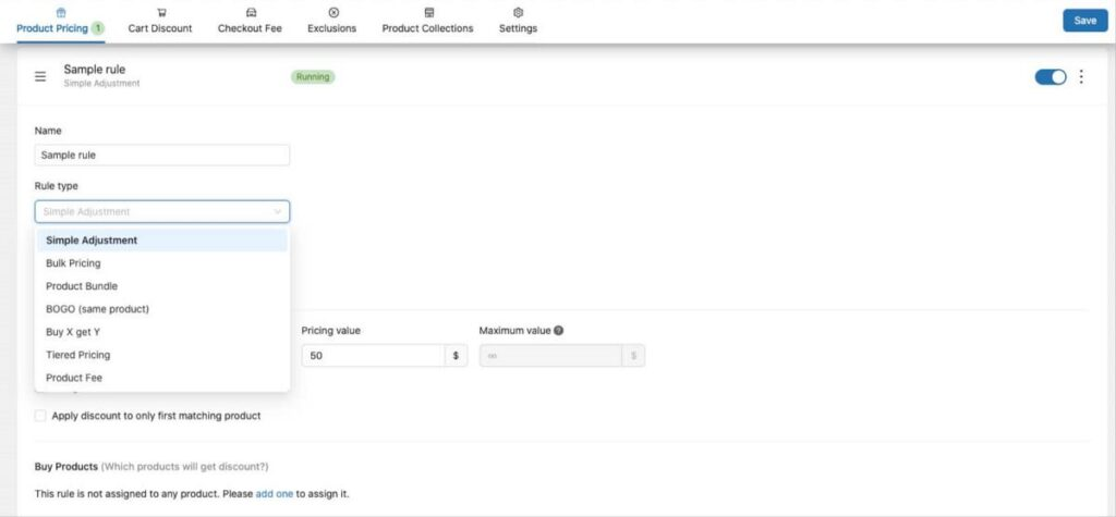Both plugins handle the essentials well. You can run percentage discounts, fixed amounts, bulk pricing tiers, and BOGO deals with either plugin.